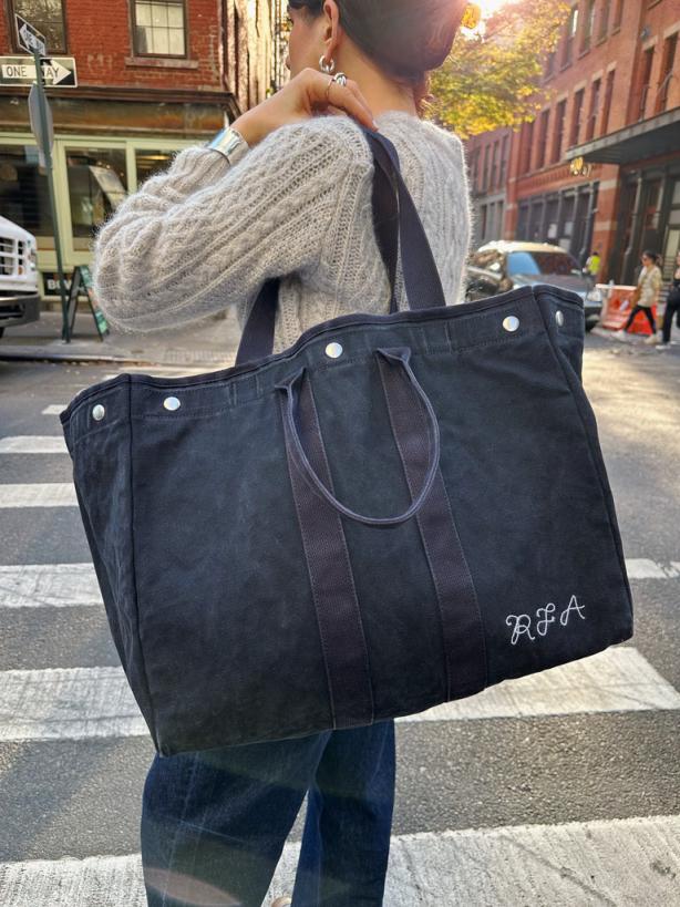We set out to make a truly great tote. Instead, we ended up with a whole family—each perfectly sized for the job at hand and designed to last you a lifetime. Inspired by a vintage military canvas bag, this is the only tote you’ll need for your daily commute, weekend trips, or as a casual carry-on. Crafted in durable, garment-washed canvas with bar tacks and a reinforced trim, this one will last you for years to come. Interior, laptop-size compartment + zip pocket Double handles with (tuckable) shoulder straps Personalized orders will ship within 3 weeks.